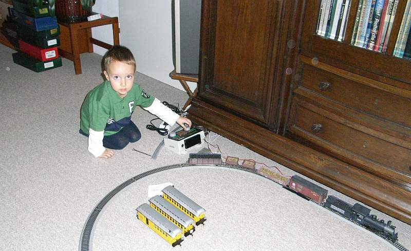 Mein Sohn ist jetzt vier und ärgert sich, dass er in Spur N nicht allein Loks auf die Gleise setzen darf. Dann waren wir im November 2007 in der Weihnachtsstadt Tondern in Dänemark - dort fuhr auf dem Dach eines Kiosks ein Weihnachtszug in Spur1 ... was Jesper und seinen Vater natürlich sofort begeisterte. Nun ja, Spur1 war doch etwas gross, aber zurück in Deutschland wurde recherhciert und Spur 0n30 im Maßstab 1:48 als zusätzliche Zielgröße ausgesucht. Diese Spur 0 Fahrzeuge fahren auf dem 1:87 Gleis der Spur H0 und sind Schmalspurfahrzeuge. Prämissen waren, dass alles digital sein muss und möglichst auch schon mit Sound versehen sein sollte... das ist jetzt zweieinhalb Monate her und folgende Modelle sind bei uns eingezogen: