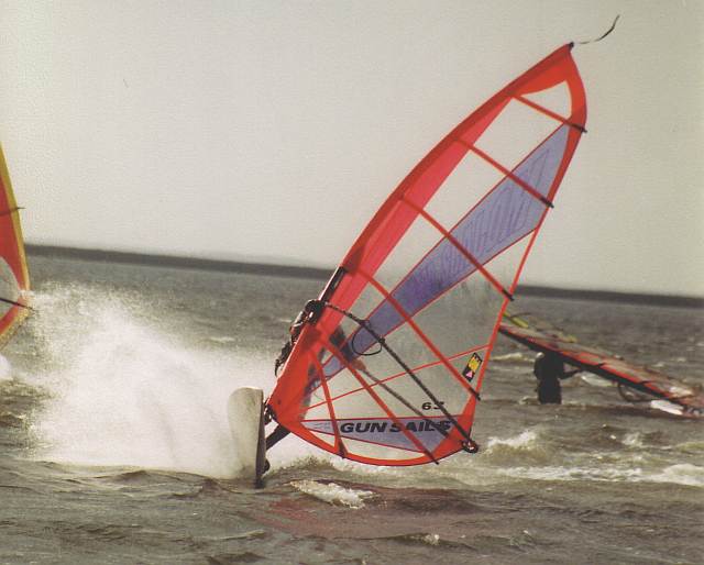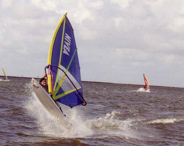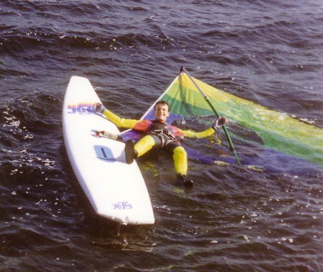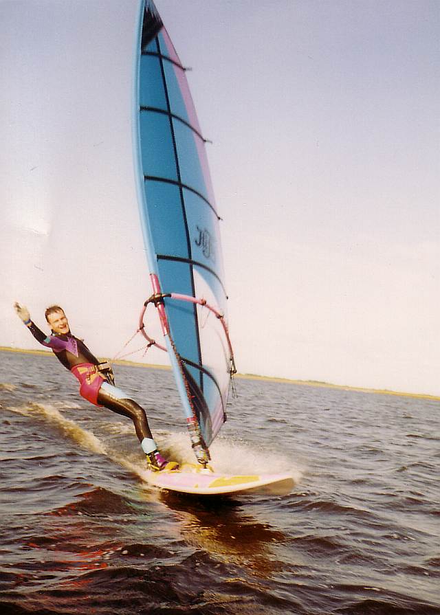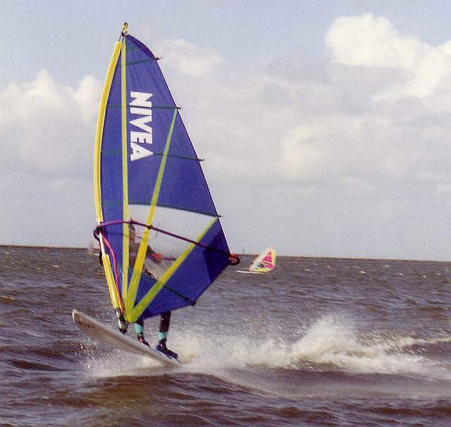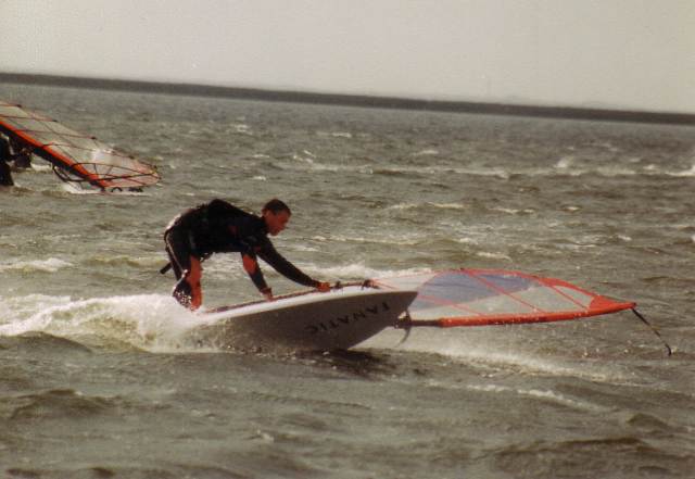 Mit dem Windsurfen habe ich so richtig 1989 begonnen, nachdem ich jedoch auch 1985 schonmal einen Sommer geübt hatte. Ein guter Freund lieh mir sein Brett und hat mir die Grundmanöver auf dem Salzgitter See beigebracht. Dann kamen schnell Touren an die Flensburger Förde. Mit etwas Übung bin ich dann auf eine ebenfalls geliehene Fanatic Bat umgestiegen, mit der Durchbruch kam - Gleiten, Heizen, Halsen :-))